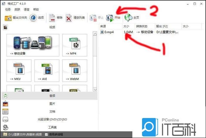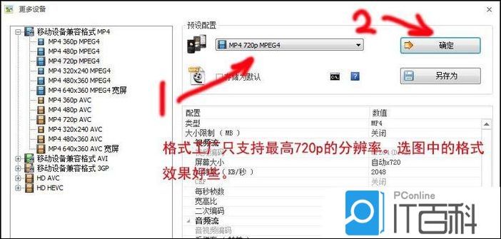 7、然后选择 转换格式 , 格式工厂最多支持720p 的,选择图中的设置,效果会比较好,