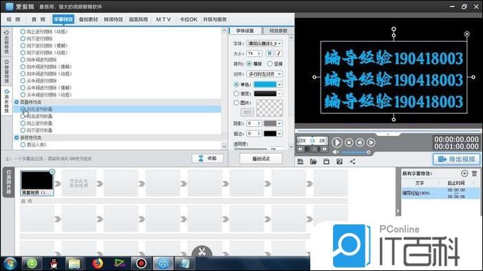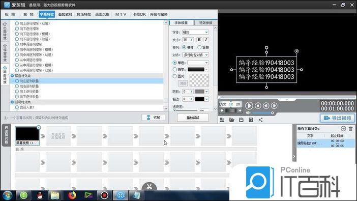 爱剪辑如何添加向左逐列收叠效果的字幕【详解】