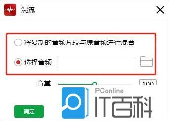 第四步、这里以两首不同的音频为例。添加新的音频后,可设置音频的大小,然后点击“确定”;