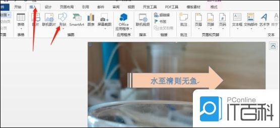 5、使用【插入】——【形状】命令插入图形文件,并可以在形状中输入文字,设计字体及填充效果等。如下图所示: