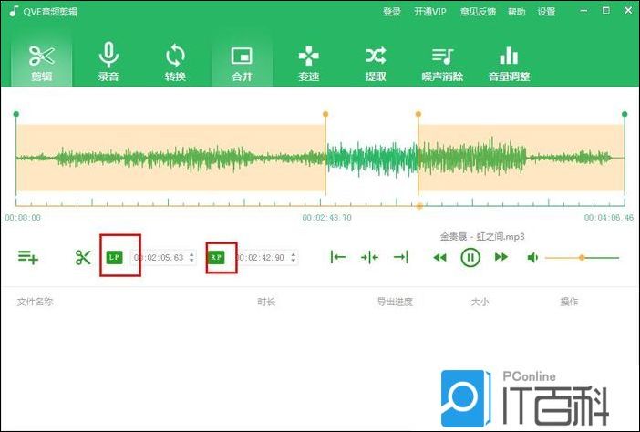 3、成功导入音频文件后,LP功能是选择前面的时间,RP功能是选择后面的时间,用户只需点击这两个功能后选择想要截取的时间点即可。
