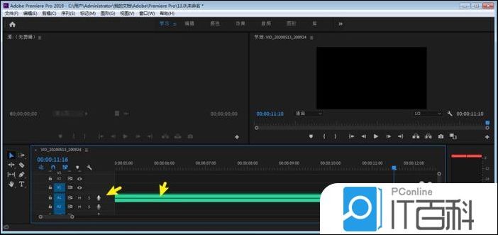 录音完成后,点击轨道上麦克风停止录音,再把绿色的录音文件对准视频轨道就可以了,就在pr完成了对视频的录音。