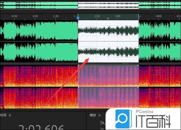 3、然后单击要粘贴的音频文件后再频谱中要粘贴的位置。