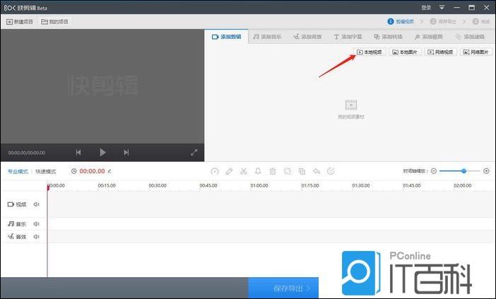 进入快剪辑主页后, 点击本地视频添加视频素材;