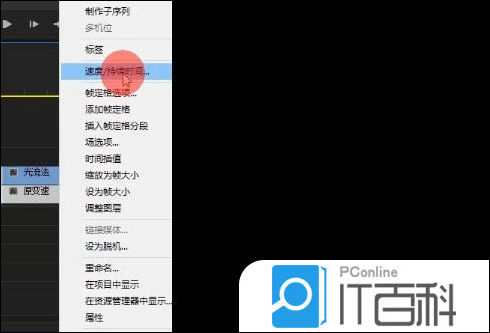 4、接着再次鼠标右键,选择【时间/持续速度】。