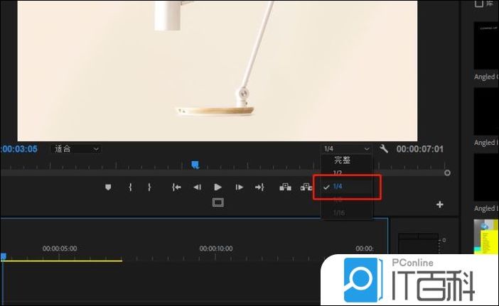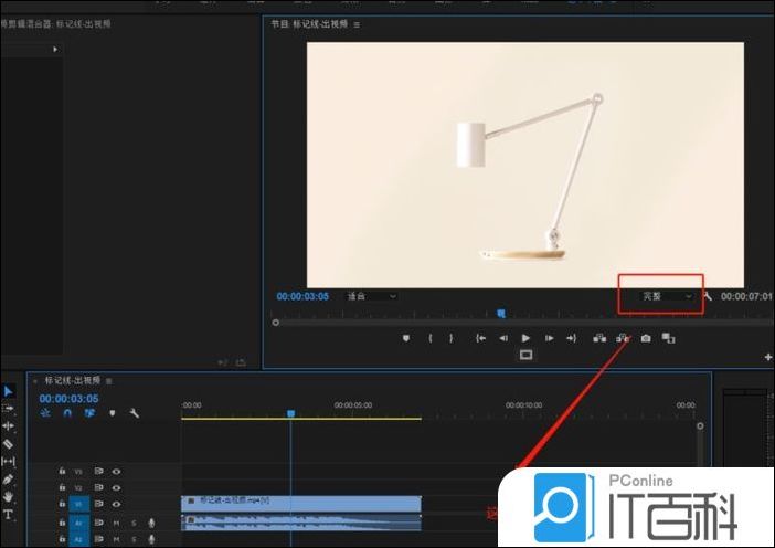 我们在预览播放窗口的下方有一个“选择回放分辨率”,这个选项的显示为完整,下面我们就来更改它。