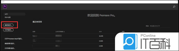 2、进入pr2019主页面后我们点击上方的” 新建项目“ 按钮