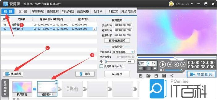1、打开爱剪辑,然后添加多个视频,如图所示。