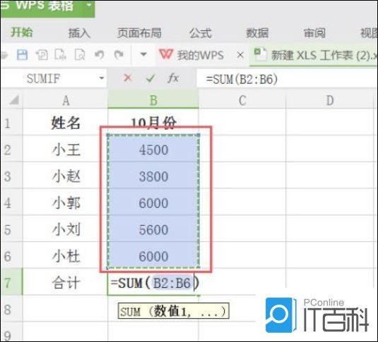 WPS数据求和步骤: