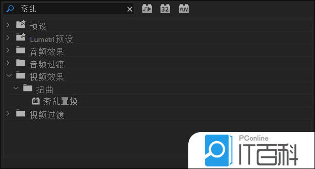 2、接着在效果中查找 紊乱置换效果