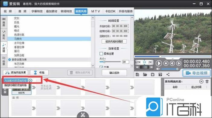 3、点击下面的“ 添加风格效果 ”,选择第一个“ 为当前片段添加风格 ”