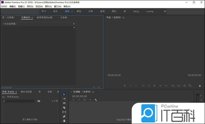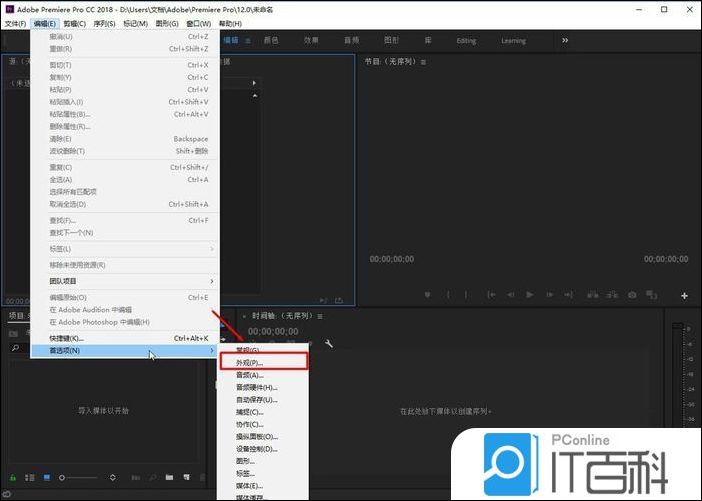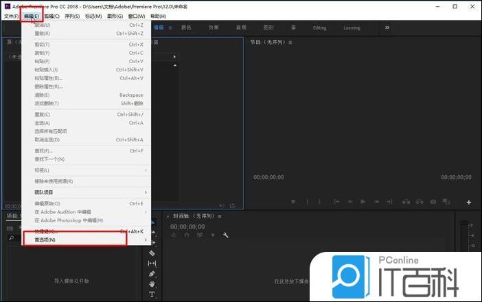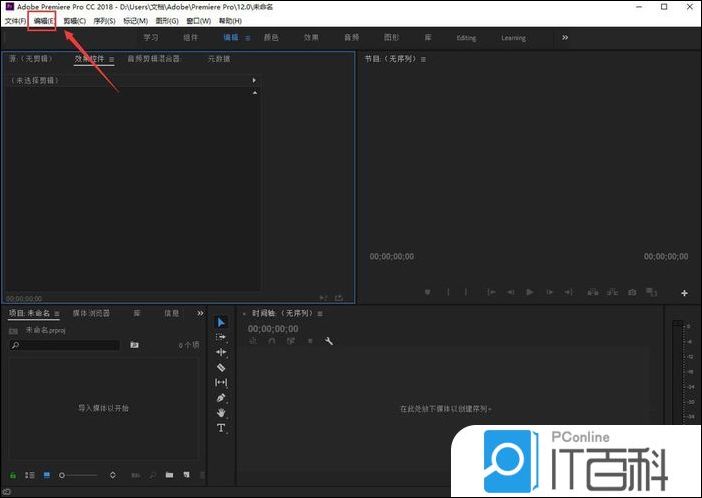 2、进入PR界面之后,在菜单中找到“ 编辑 ”按钮,鼠标左键单击选中。