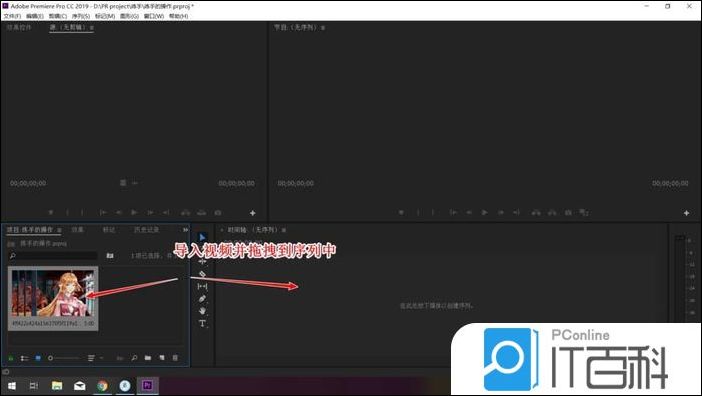7、接下来我们直接关闭该界面即可。这个时候我们可以看到序列上并没有显示字幕,而在项目的管理器中有字幕文件,我们将其拖拽到序列上即可。