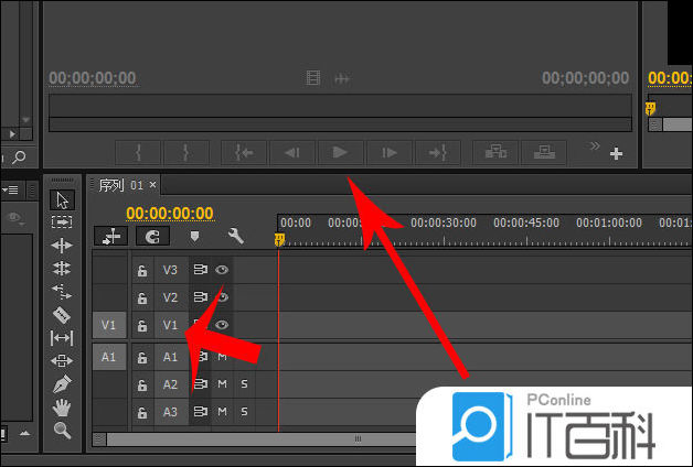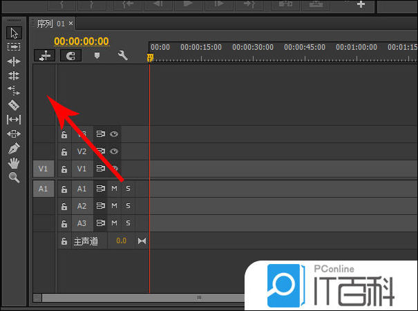 1、打开pr的工作区,然后查看“ 序列 ”面板,这时可以看到系统设置的3条音频和3条视频轨道,然后将鼠标移动至“ 序列 ”面板的上边沿,然后点击鼠标向上拖动