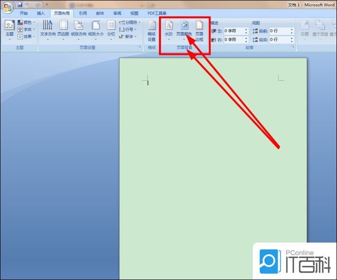 3、点击【页面布局】按钮,在其内找到【页面背景】选项,并在【页面背景】里找到【背景颜色】选项。如下图所示。