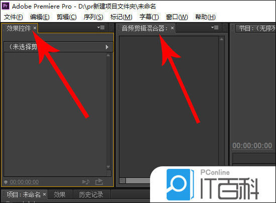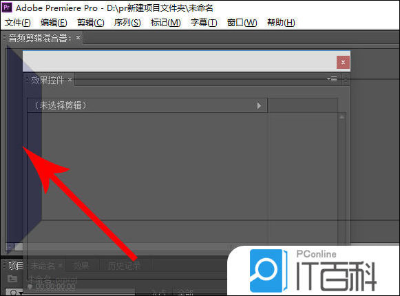 4、这时可以看到效果控件面板出现在了 音频剪辑混合器面板 的左侧, 两个面板属于并列关系