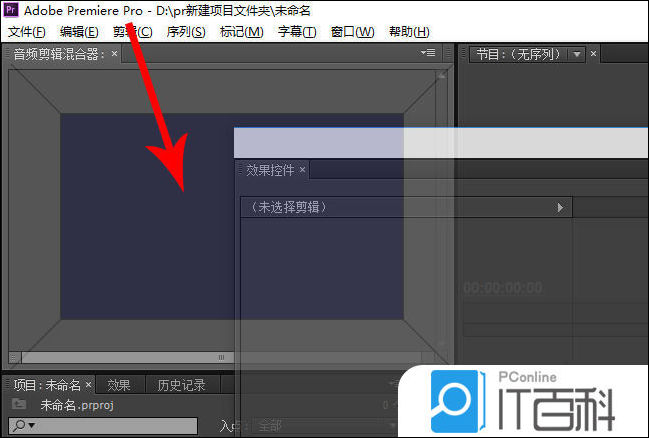 1、打开pr工作界面,按住浮动面板的控制按钮,然后将其拖动至原来位置所在方向