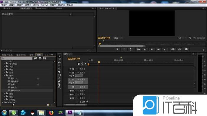1、要做效果,一定要知道这个“ 斜面alpha效果 ”功能的位置: 特效-视频特效-透视