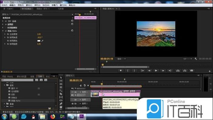以上就是premiere给素材添加斜面alpha效果的教程,希望大家喜欢,请继续关注IT百科。