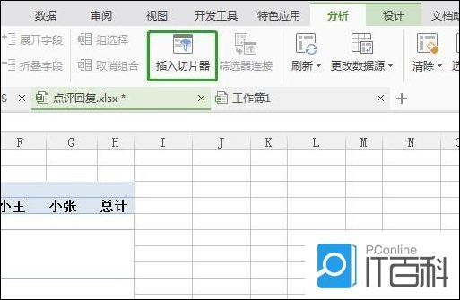 第二步、点击数据透视表,在分析界面中,点击插入切片器;?