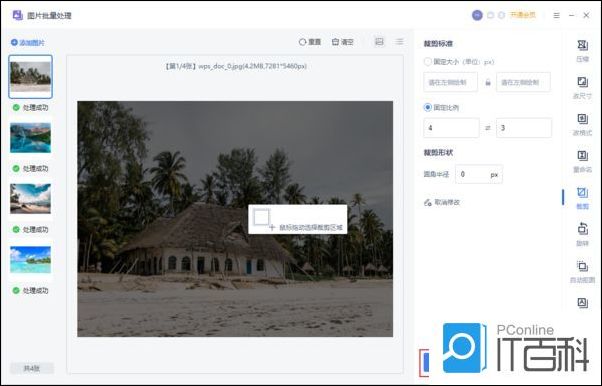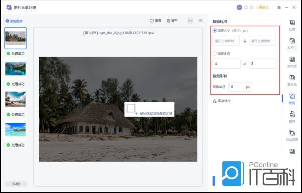 图片的尺寸修改完毕后,如果还需要调整图片的比例,可以在裁剪页面中对图片进行固定大小或固定比例裁剪。