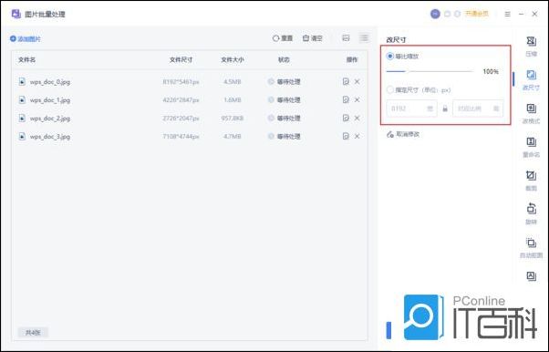 在图片批量处理界面,我们可以对图片的尺寸进行等比缩放,或者指定图片的尺寸。