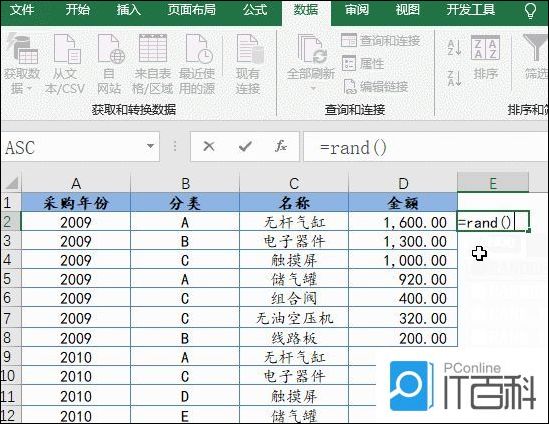 如果要对数据进行随机排序,可以在空白列中先输入一个能产生随机小数的函数:=RAND()