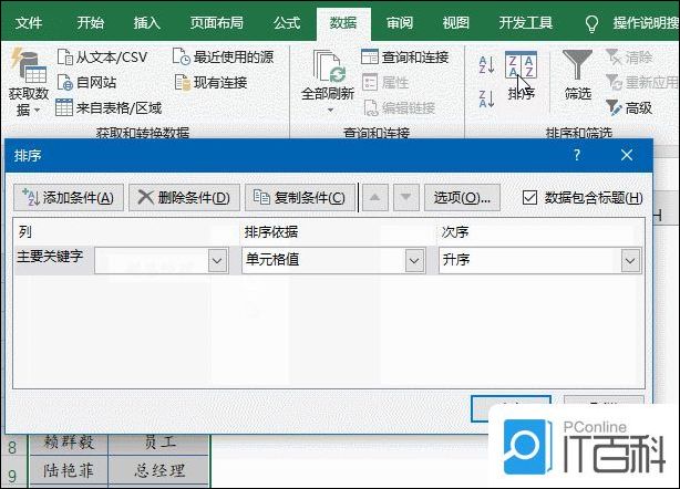 如果数据列数比较多,在按多列排序时,还可以使用【排序】对话框来操作。