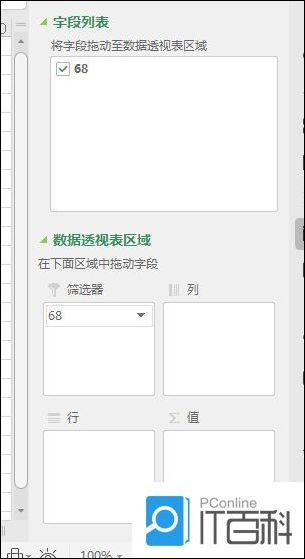 3:如下图所示,在使用透视表的时候,记得更改以下的数据以数据表正确的展示。横列数值直接拖到下方的展示栏中,即可完成操作。