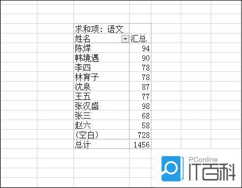 2:如图所示,全选需要透视的数据,找到插入,插入数据透视表,将出现如图所示的数据透视表,数据透视表就设置完成了。我们得到了单独的语文汇总。