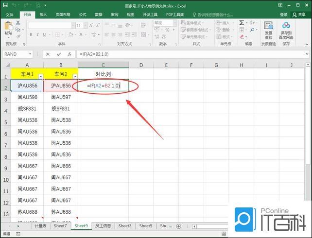 Excel用函数对比两列数据是否一样的教程