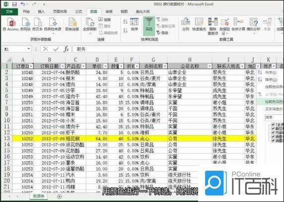 3、【③筛选】对两个需要对比的数据【标注颜色】然后【数据-筛选-然后在随便一列下选择按颜色筛选】。