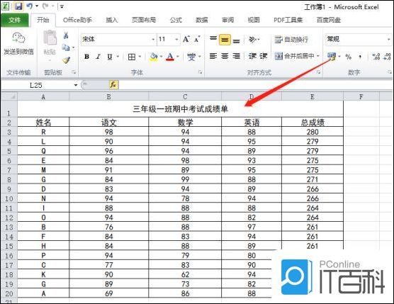 1.首先,打开班级的成绩单,可以看到每个同学的成绩,如下图所示: