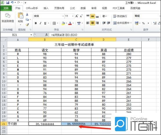 8.最后,可以看到了平均数被求出来了,数值也变成了两位小数了,如下图所示: