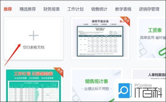 打开在线表格,这里可以根据自己的需求来选择相应的模板,这里我们选择空白表格文档选项。