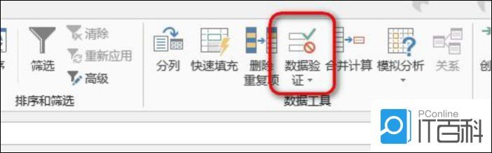 5.如图,此时会在“数据”标签的下面找到“数据验证”的按钮,点击该选项,然后继续下一步。