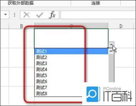 3.当点击下拉箭头时会发现弹出了一个内容列表,此时明白了,C1单元格被限定了只能输入列表中的内容。如图所示。