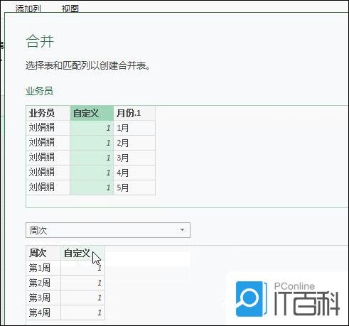 在此基础上,我们继续添加“每周”合并查询,然后删除“自定义”列。