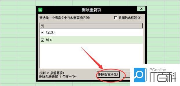 8、这时会弹出第二个提示框,现在点击右下角的“删除重复项”。