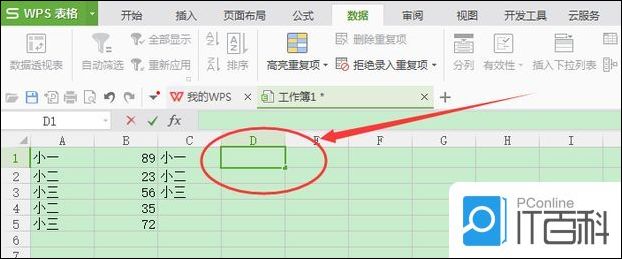 14、现在鼠标点击D1单元格右下角并向下拖至D3单元格。