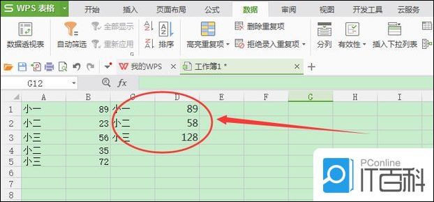 15、在被合并同类项的字符串对应的数据已被求和完成。