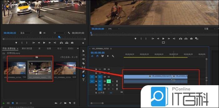 2、根据导入的视频素材来 创建序列 ,并将两个视频在序列的同一个 时间轴 首尾相接摆好位置。