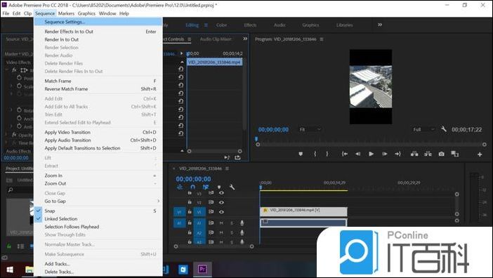 6、旋转后发现我们的 视频留有上下黑边 ,这时我们需要再编辑一下序列帧的大小,以去除黑边。首先打开图示序列设置 菜单