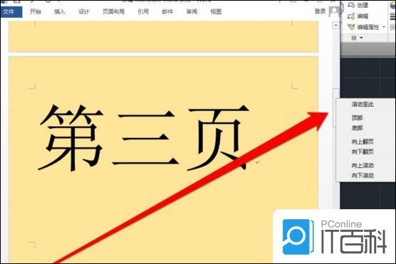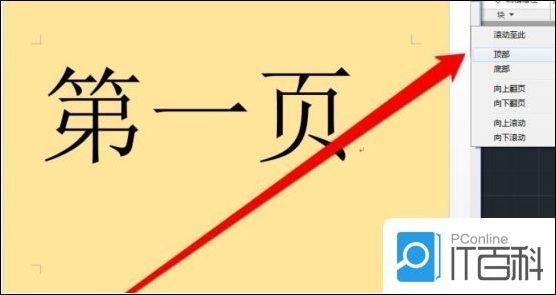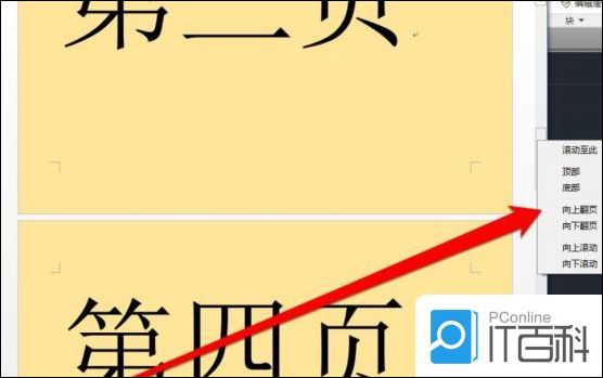 5.右键点击滚动条后,出现一个 菜单 ,选择底部会直接翻页到文稿的末尾页。如下方图片内容所示: