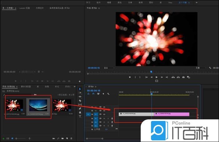 2、设置了序列并创建之后,在将素材媒体都依次移动到序列的 视频轨道 。