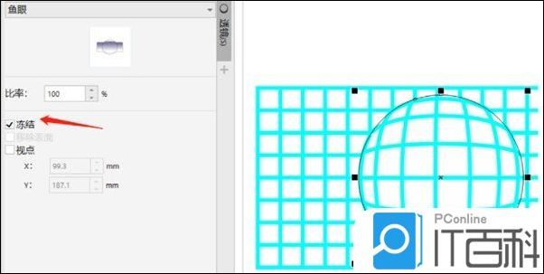 六、删除轮廓、底面及大矩形,留下带有鱼眼效果的矩形