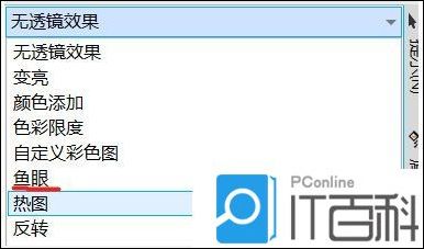 四、点击上方【效果】-【透镜】调出透镜工具,选中正圆,在透视的菜单中选择【鱼眼】