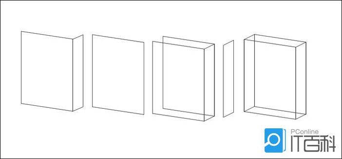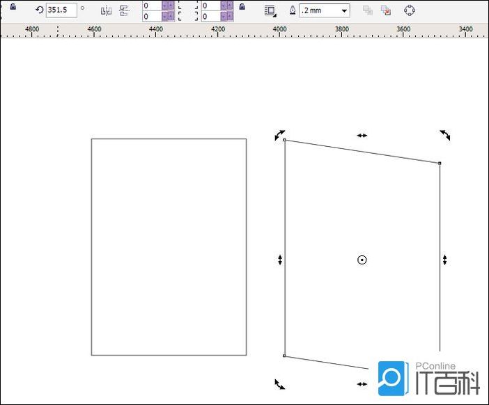第二步:在这个倾斜这面旁边在绘制一个矩形,宽度自定,向上倾斜一点这是10cm,高度跟倾斜的这面一样,复制倾斜的这个正面,放在这正面这个图层后面,在把侧面这个矩形复制一个放在左边,如下图,大致框架就OK了。