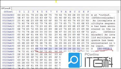 6、然后点击左侧编码,直接输入进行修改,将 49 53 4F 2D 38 38 35 39 2D 31,修改成47 42 4B 00 00 00 00 00 00 00 ,右侧则由 ISO-8859-1自动变成GBK 。