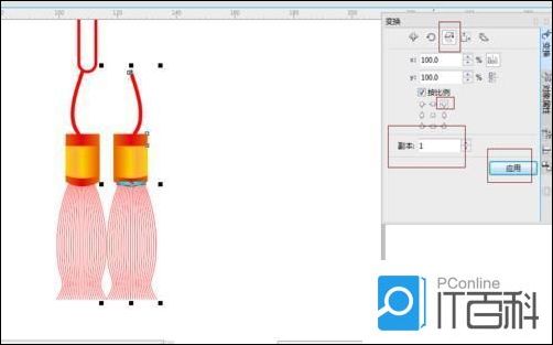 16、将所有图形编组。复制一个,镜像。将他们缩小一点。将中国结全部选中,进行编组。